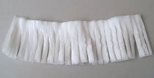 Z bibuły wycianamy prostąkątne kawałki, które następnie tniemy w paseczki, tak aby powstały a'la frędzelki. Przygotowane